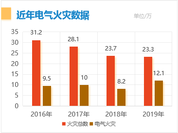 2019年,全國發(fā)生火災23.3萬起,其中電氣火災引起的占52%。